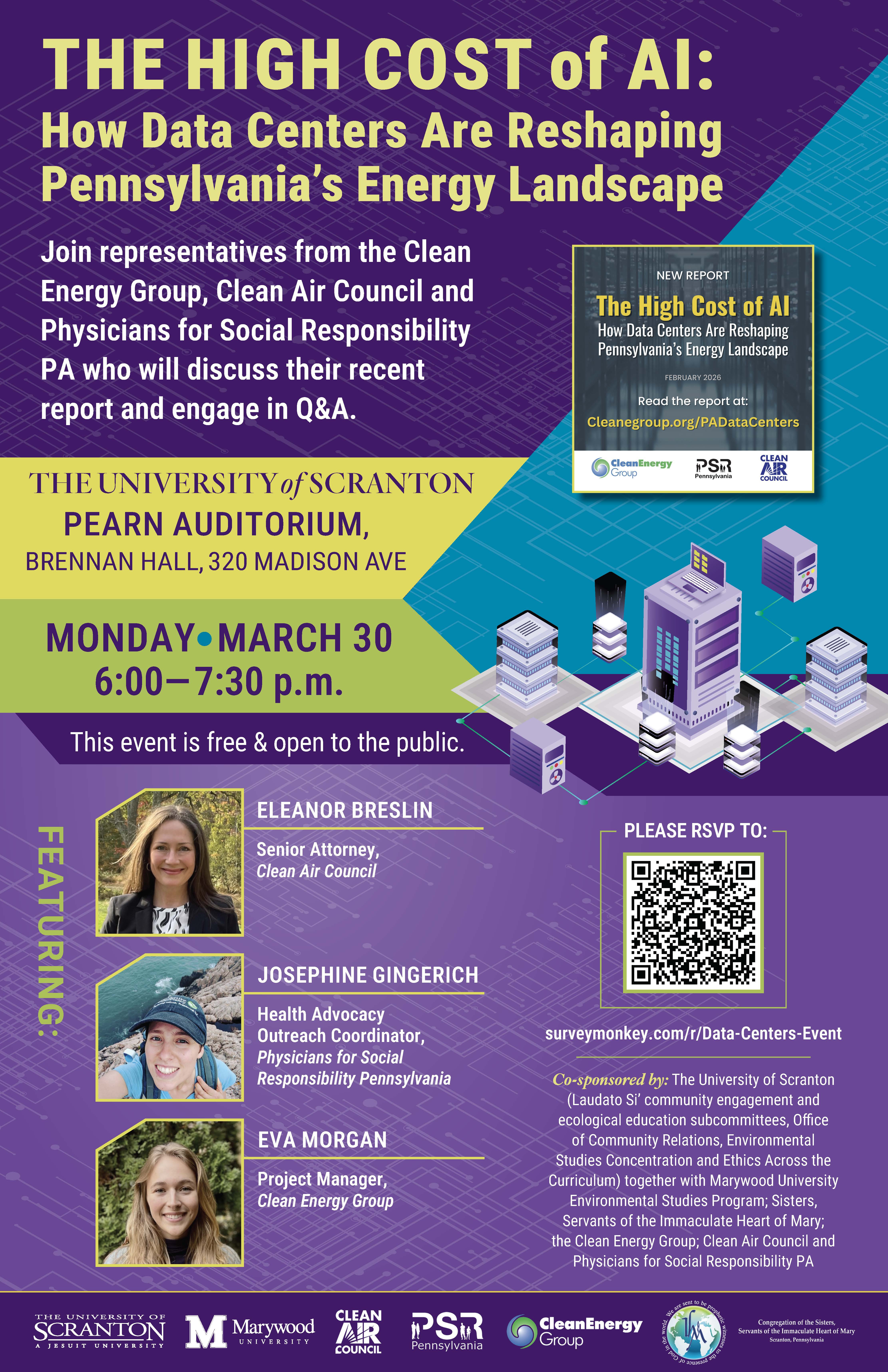 University of Scranton Brennan Hall, Pearn Auditorium 320 Madison Ave, Scranton, PA, United StatesJoin representatives from the Clean Energy Group, Clean Air Council and Physicians for Social Responsibility PA who will discuss their recent report and engage in Q&A. This event is free and open to the public. Register